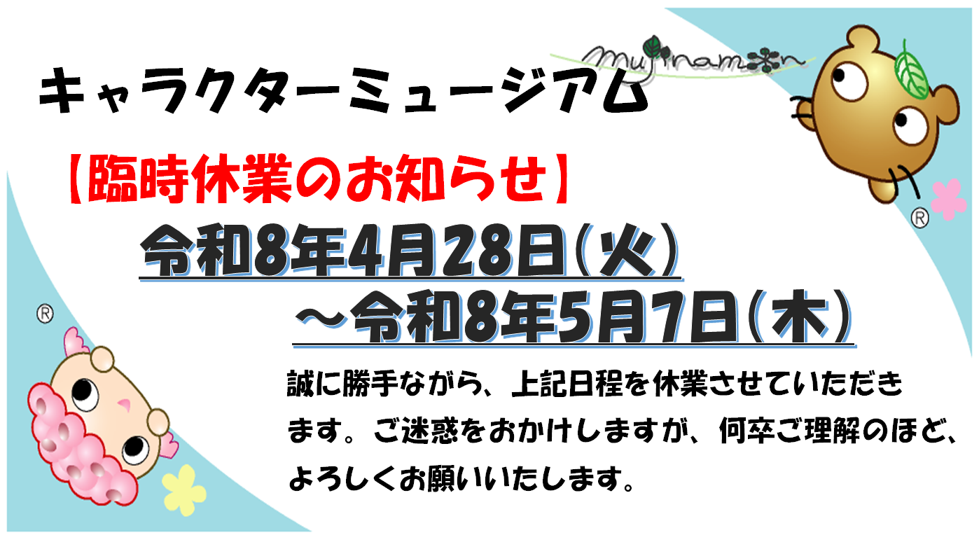 【キャラクターミュージアム臨時休館のお知らせ】